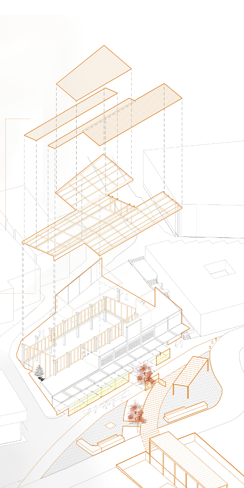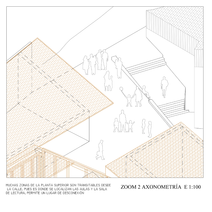Es bajo esta premisa que el proyecto se focaliza en aquello que une a ambos programas, y sigue este mantra para la intervención paisajística de los alrededores.