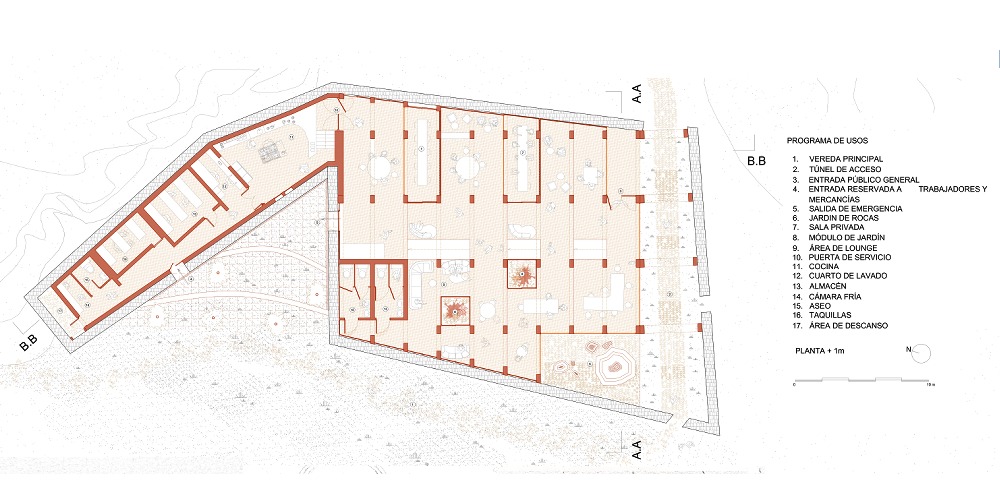 La morfología del proyecto busca imitar la experiencia de caminar entre espigones, por ello se emplea una forma tan masiva. Además, se emplea tanto ventanales de vidrio como láminas de alabastro, que buscan imitar los tonos anaranjados que se hayan en las rocas, tanto en forma de fauna y flora, como algas y corales así como liquen de las piedras.