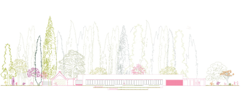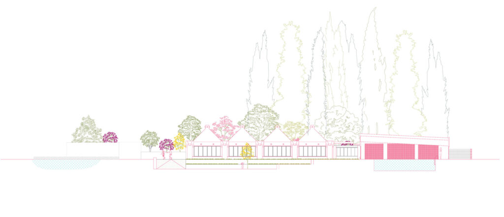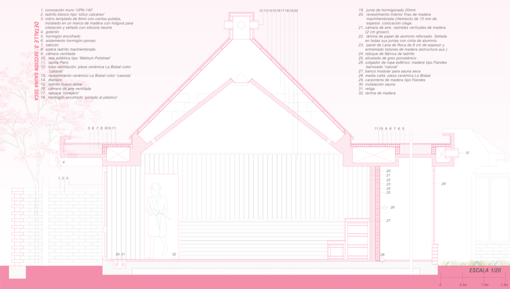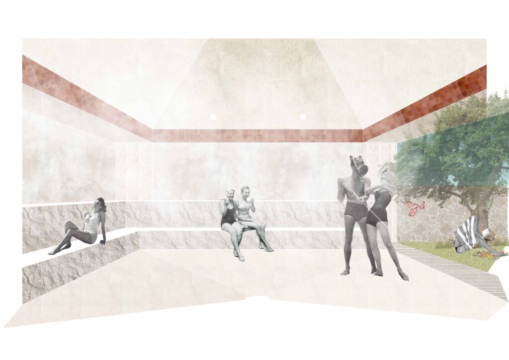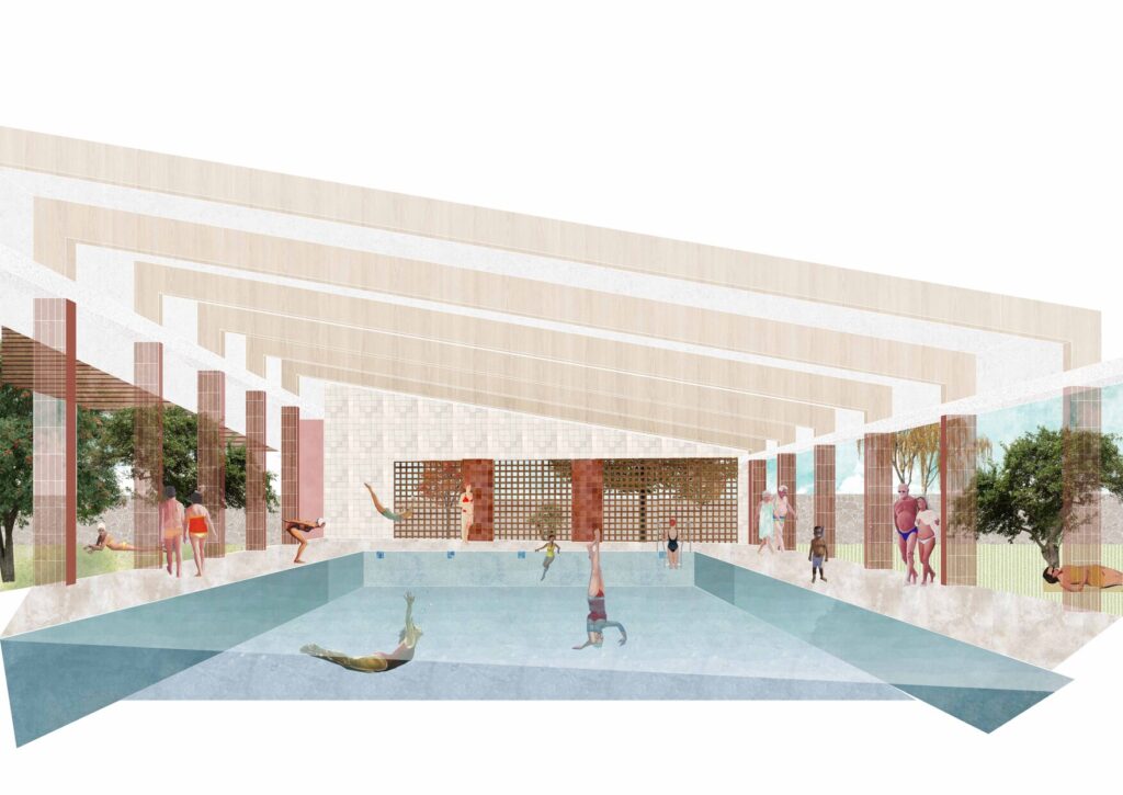Equipamiento de agua que reinterpreta la arquitectura de Bonet en Hifrensa mediante pabellones modulares, patios y espacios aterrazados. Piscinas, saunas y áreas de actividad se articulan a través del agua como elemento vertebrador, el muro grueso y una relación precisa entre arquitectura, paisaje y clima mediterráneo.