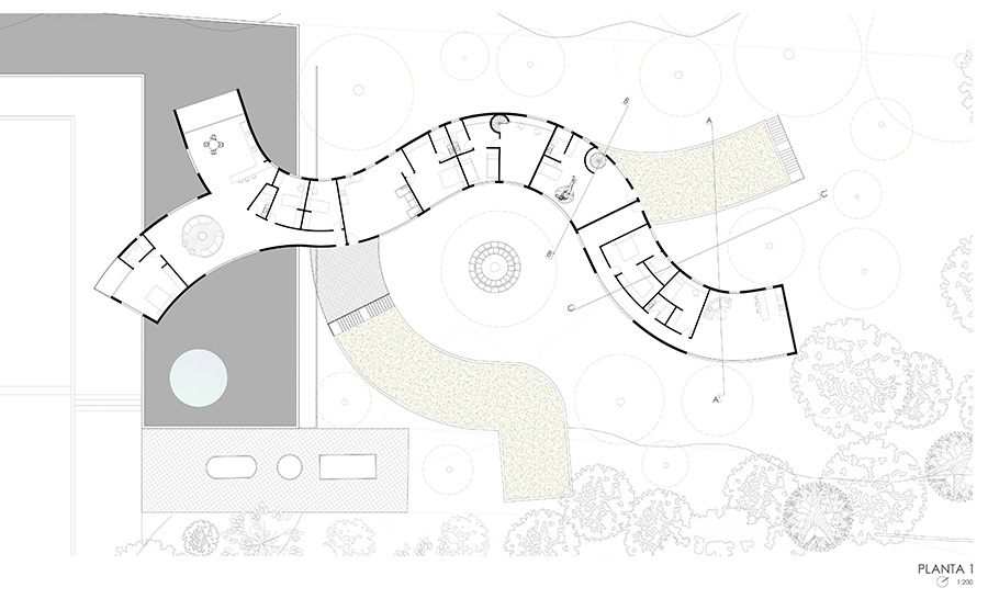 Laura Contreras Moya Estrategia Primeras aproximaciones Planta 1 Planta 0 Sección Alzado Axonométrica Maqueta Expandiendo el Camping El Templo del Sol